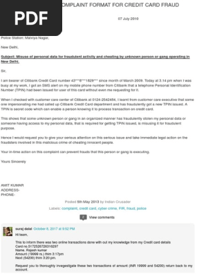 Police Complaint Format For Credit Card Fraud Fraud Credit Card