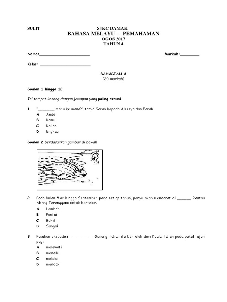 Kertas Soalan Bm Pemahaman Tahun 4 Peperiksaan Pertengahan Tahun