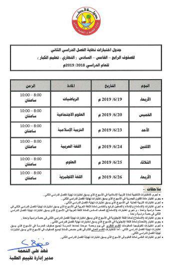 جدول اختبارات نهاية الفصل الدراسي الثاني لصفوف الرابع الخامس السادس النهاري وتعليم الكبار للعام الدراسي 2018 2019 منتديات صقر الجنوب