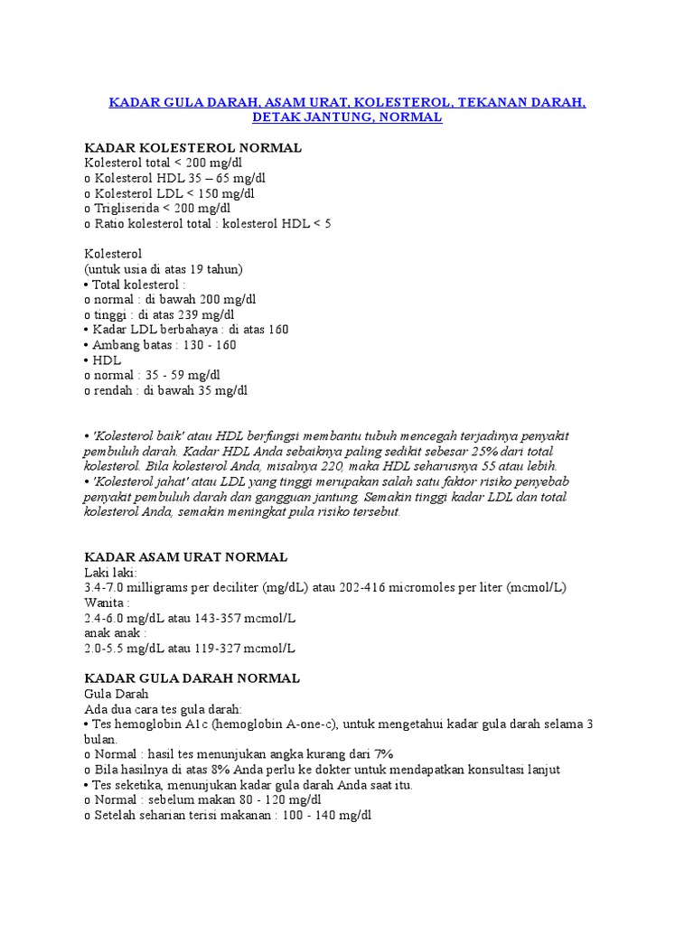 Standar Kolestrol Gula Darah Asam Urat