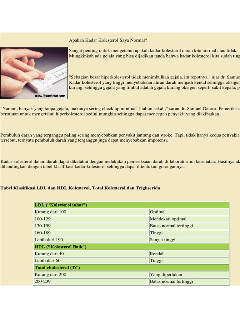 Kadar Ldl Dan Hdl Normal
